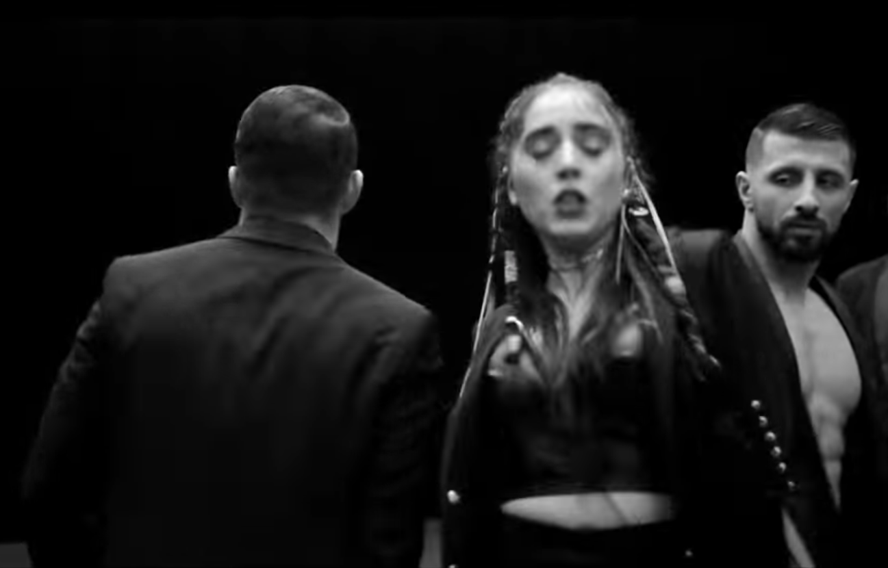 And it also features a very uncomfortable looking video where Srbuk is surrounded by a group of men – hot men without shirts under their blazers, granted – who eventually close the circle around here and bump into her with increasing force. It’s not an easy thing to watch.